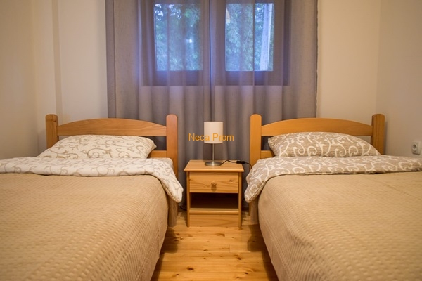 Apartman se nalazi u centru grada, u blizini Doma zdravlja, i 300 metara od Akva parka. Ima dve spavaće sobe sa jednim francuskim ležajem i dva dečija kreveta, veliki dnevni boravak i kuhinju. Kompletno je renoviran 2020.godine i pogodan je za smeštaj četvoročlane porodice.