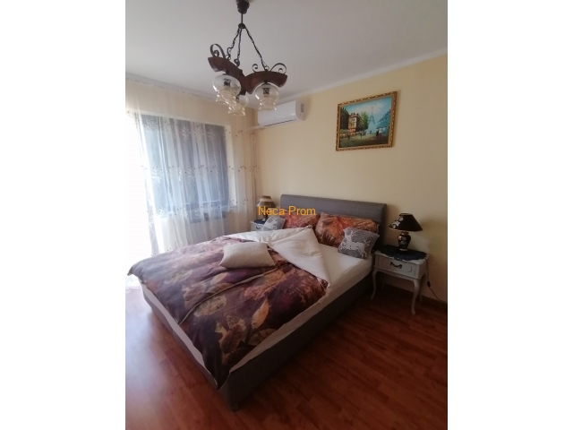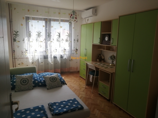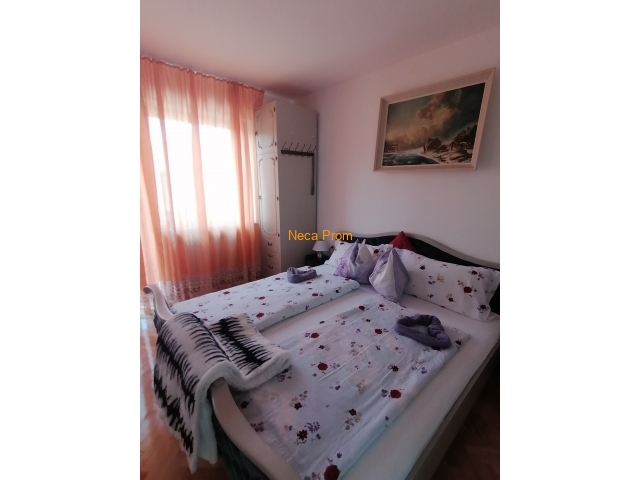 Apartman se nalazi u centru grada, u blizini Doma zdravlja, i 300 metara od Akva parka. Ima dve spavaće sobe sa jednim francuskim ležajem i dva dečija kreveta, veliki dnevni boravak i kuhinju. Kompletno je renoviran 2020.godine i pogodan je za smeštaj četvoročlane porodice.