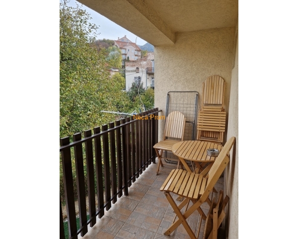 Stan u centru Sokobanje, na glavnom gradskom šetalištu. Nalazi se na prvom spratu stambene zgrade, površine je 52m2, cena 94.000 eura sa stvarima.