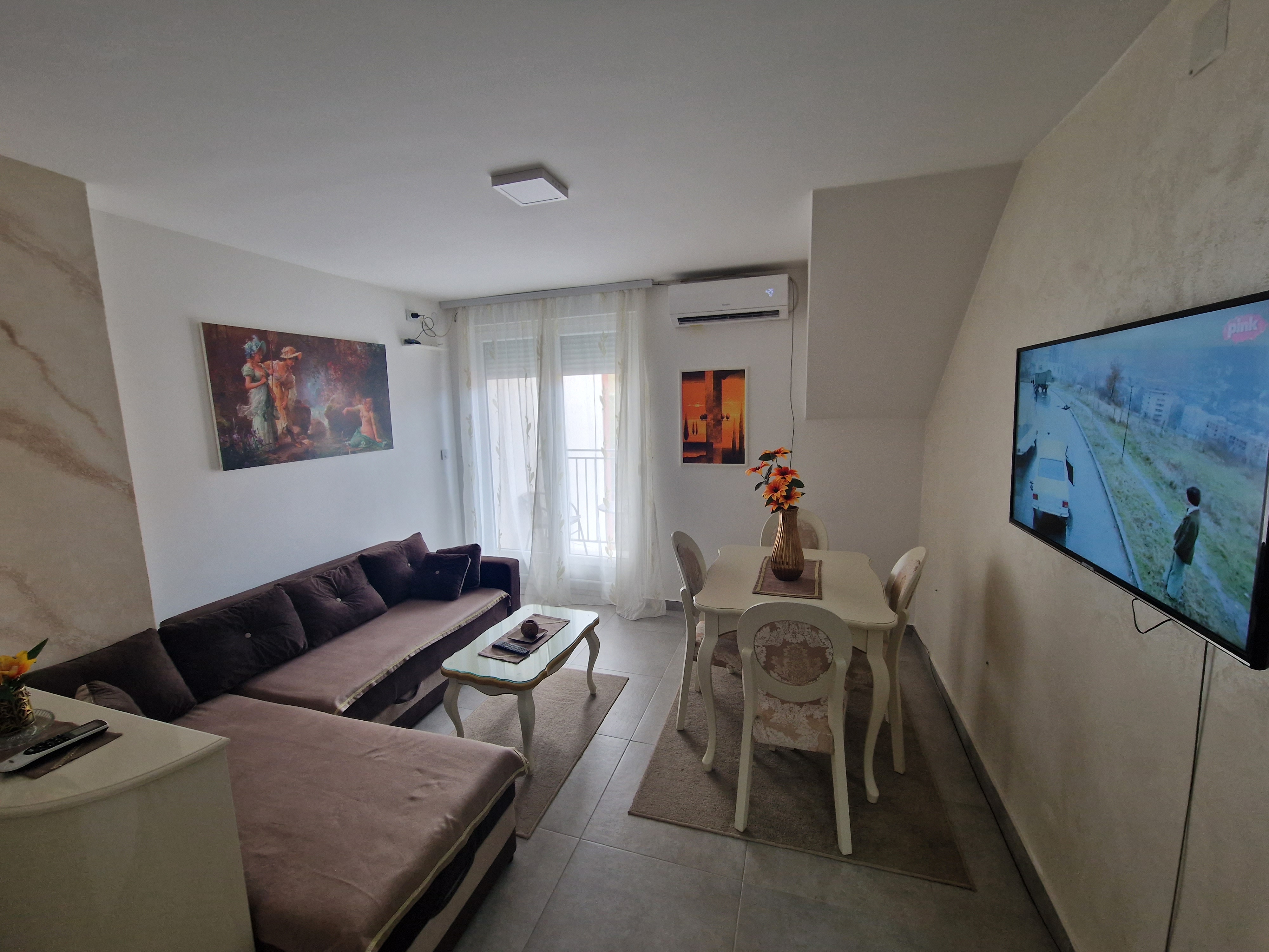 Stan naselje Carina, na IV spratu stambene zgrade. Površina stana je 60m2 i sastoji se od dnevnog boravka, dve spavaće sobe, kuhinje, kupatila i dve terase. Cena stana sa stvarima je 72.000 eura.