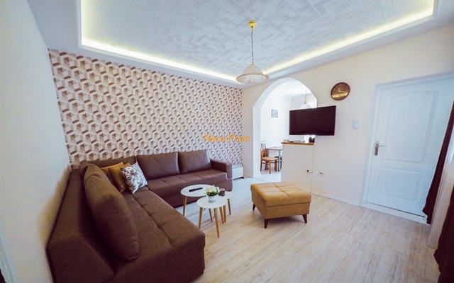 Apartman se nalazi u centru grada, u blizini Doma zdravlja, i 300 metara od Akva parka. Ima dve spavaće sobe sa jednim francuskim ležajem i dva dečija kreveta, veliki dnevni boravak i kuhinju. Kompletno je renoviran 2020.godine i pogodan je za smeštaj četvoročlane porodice.