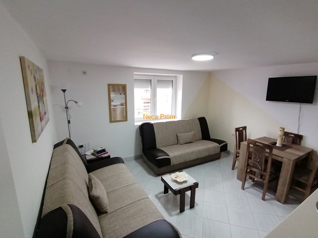 Izdaje se opremljen stan površine 43m2 u bliz1ini Akva parka, naselje Podina. Stan se nalazi na prvom spratu stambene zgrade, sastoji se od dnevnog boravka sa kuhinjom, jednom spavaćom sobom, kupatilom, terasom i obezbeđenim parking mestom. Cena mesečne kirije je 300 eura + prateći troškovi (račun za vodu, struju i održavanje zgrade).